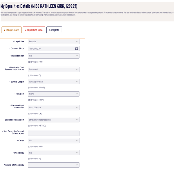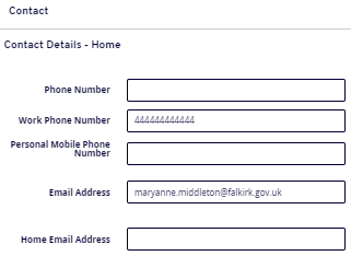 You can now view your current details and the appointment history. Please note that some of these details cannot be populated until you have started with Falkirk Council.