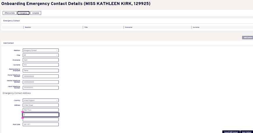 - Enter the details of your next of kin, including a telephone number where they are most likely to be reached if necessary.