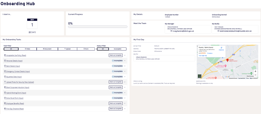 Welcome to your MyView Onboarding Hub. This will provide information about the Council, details on your first day with us and allow you to complete some important pre-employment tasks such as inputting your bank details.